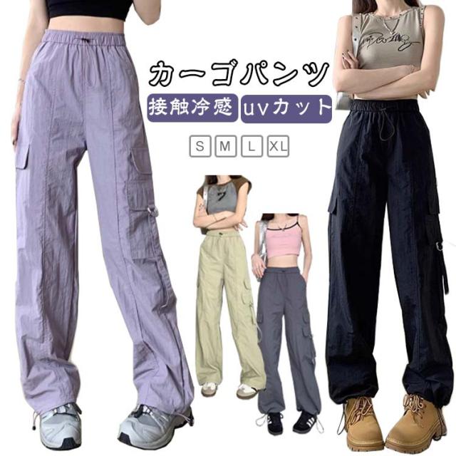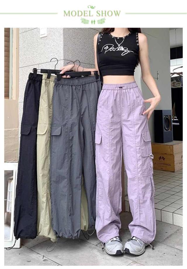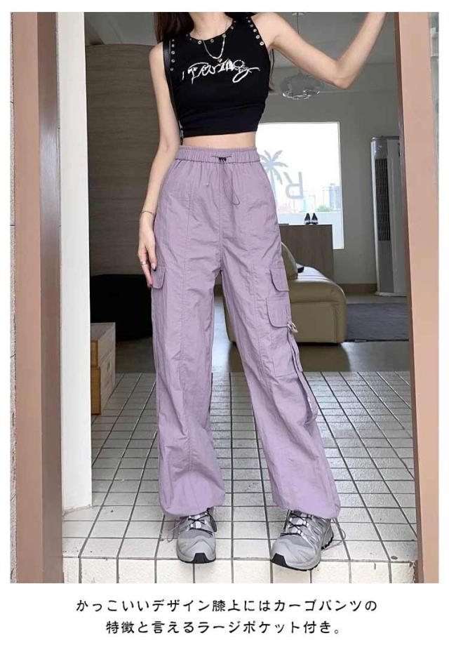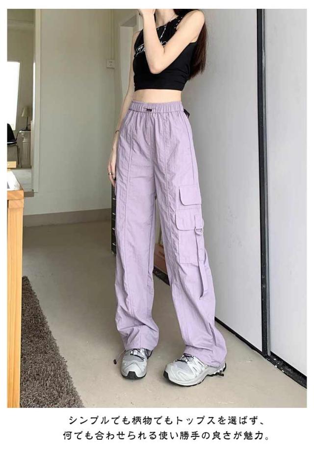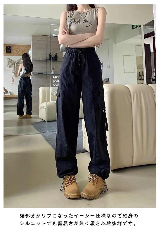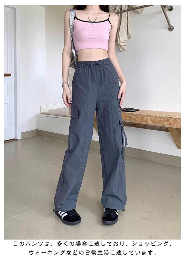 ロングパンツ 長ズボン ハイウエスト 作業着 ポケット付き ワイドカーゴパンツ ゆったり カーゴパンツ かっこいい ワークパンツ ヒップホップ ダンス用 ドローコード ボトムス 春 夏 レディース 調節 カーゴパンツ ストリート トレンド カジュアル スポーツ