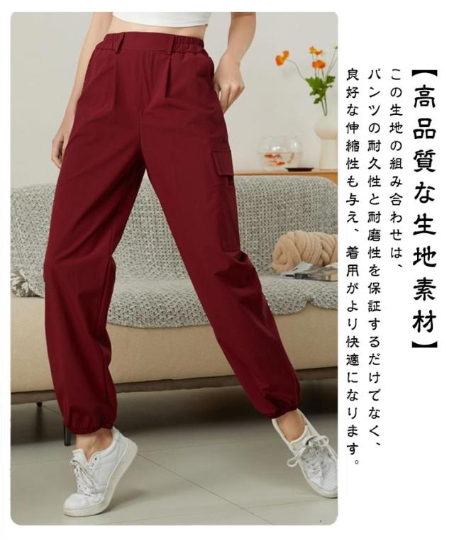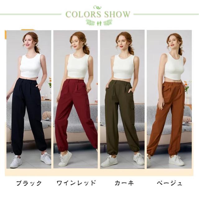 レディース カーゴパンツ カーゴパンツ ジョガーパンツ ロングパンツ ボトムス レディース 着痩せ テーパード イージーパンツ 速乾 作業ズボン パンツ ヨガパンツ ウエストゴム 春 夏 ゆったり 無地 ハイウエスト シンプル