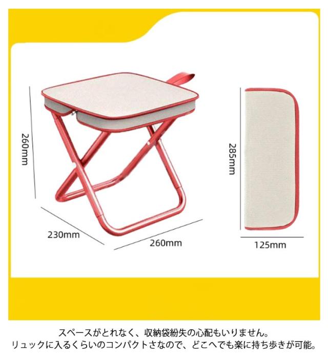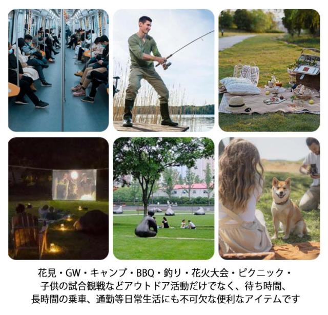 | 座面自体が収納袋に変身するので、超コンパクトで、お出かけの荷物にならない。 既存の折りたたみ式椅子よりも、更に椅子の座面自体が収納ポーチに変身し、収納バッチリです。 スペースがとれなく、収納袋紛失の心配もいりません。リュックに入るくらいのコンパクトさなので、どこへでも楽に持ち歩きが可能。 子供や高齢者を問わず誰でもラクラク使用!どこへ持ち運んでいっても負担をかけない。 組み立ては工具不要で、初心者でも簡単にできるデザインです 花見・GW・キャンプ・BBQ・釣り・花火大会・ピクニック・子供の試合観戦などアウトドア活動だけでなく、待ち時間、長時間の乗車、通勤等日常生活にも不可欠な便利なアイテムです | |