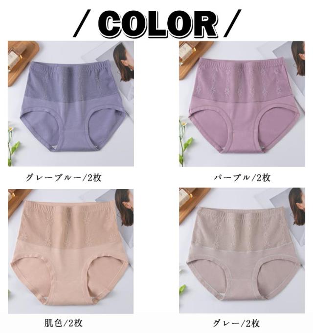2枚セット 肌着 ショーツ インナー 下着 ショーツセット 綿混 レディース パンツ 無地 大人 女性 ハイウエストショーツ 深め 深履き 大きいサイズ フィット 綿混 かわいい 保温 ショーツセット クロッチ綿 2枚組 シンプル