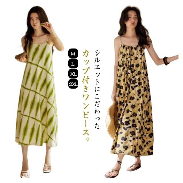 ノースリーブ 夏 レディース ワンピース 春 カップ付きキャミ 薄手 ワンピース キャミワンピース キャミソールワンピース カップ付きワンピース ワンピース ルームワンピース 夏 フレアワンピース マキシワンピース ロング丈 部屋着