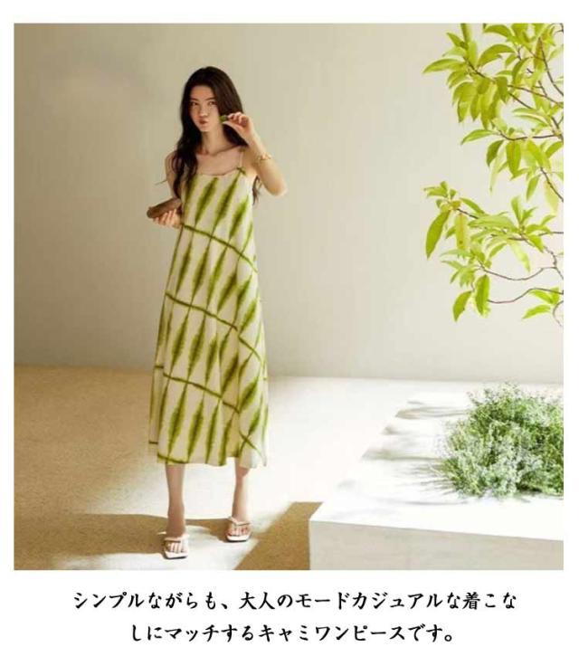 | シルエットにこだわったカップ付きワンピース。 ウエストからなだらかなに広がるフレアシルエットでスタイルアップ見えが叶う1枚。 1枚で着用するのはもちろん、シャツやカーディガン、ジャケットなどを羽織った着こなしもおすすめです。 シンプルながらも、大人のモードカジュアルな着こなしにマッチするキャミワンピースです。 | |