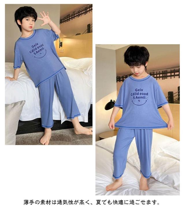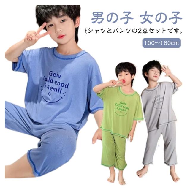 ルームウェア 部屋着 冷感 ルームウェア 半袖 女の子 夏 パジャマ モダール 薄手 ルームウェア セットアップ ゆったり tシャツ 七分丈パンツ 2点セット 子供服 男の子 上下セット 寝巻き 春夏 子ども 子供パジャマ キッズパジャマ 100〜160cm