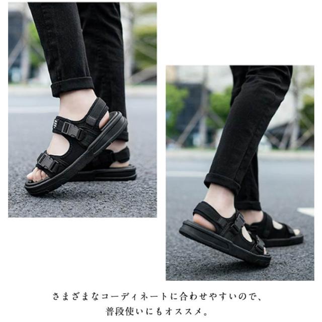 | ベルトデザインが大人の雰囲気を演出するスポーツサンダル クッション性がアップし、より歩きやすく、安定した履き心地となりました。 べルクロ仕様になっているので、自由にサイズ調節ができます。 滑りにくい厚手なソールで履き心地も歩きやすさも抜群! さまざまなコーディネートに合わせやすいので、普段使いにもオススメ。 | |