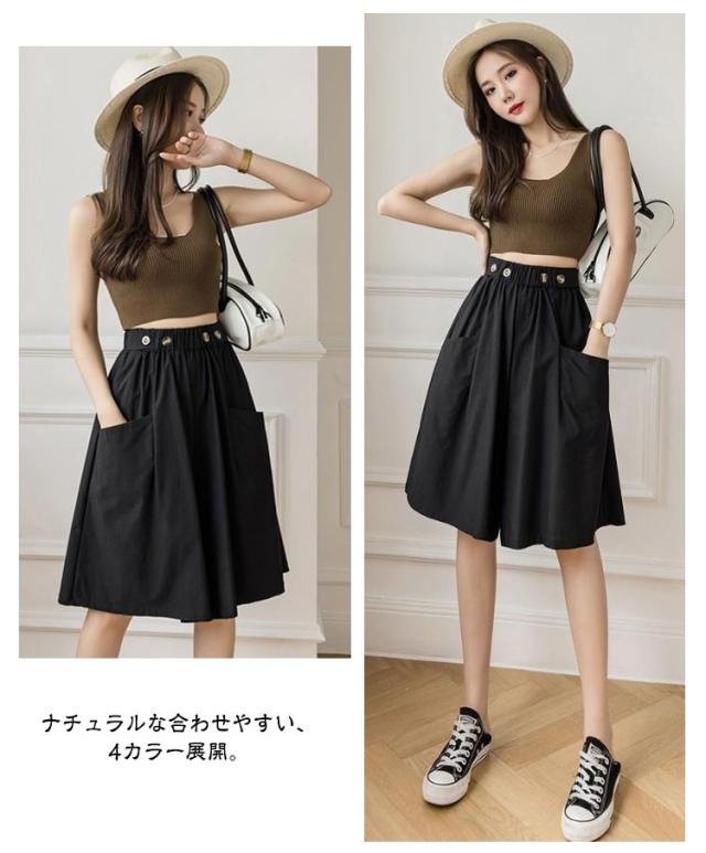 ボトムス レディース ハーフパンツ キュロットスカート スカーチョ 膝丈 5分丈 パンツ ショートパンツ キュロットパンツ 春 夏 春夏 薄手 短パン キュロットパンツ ハイウエスト カジュアル ゆったり 大きいサイズ ウエストゴム Aライン ワイドパンツ 無地