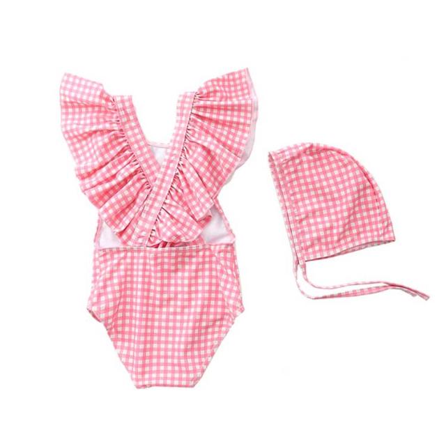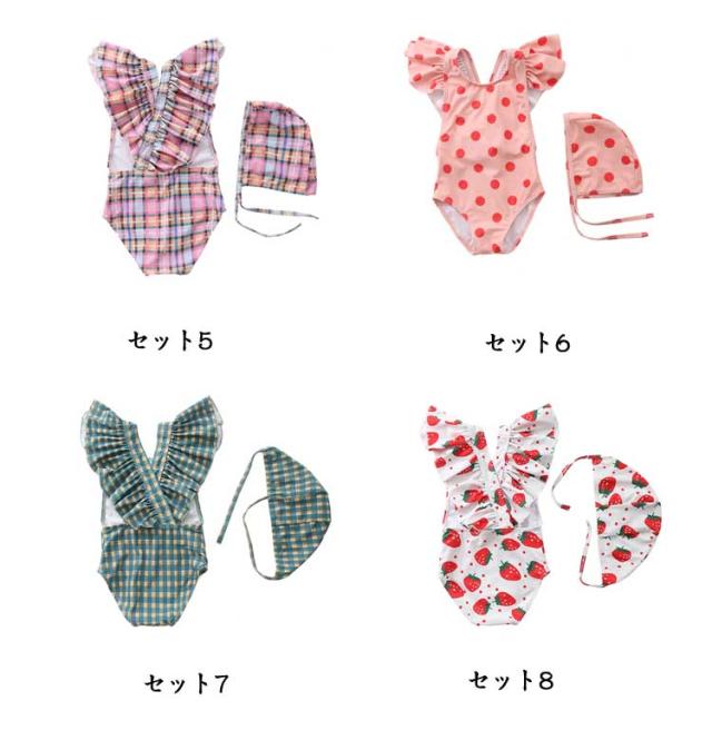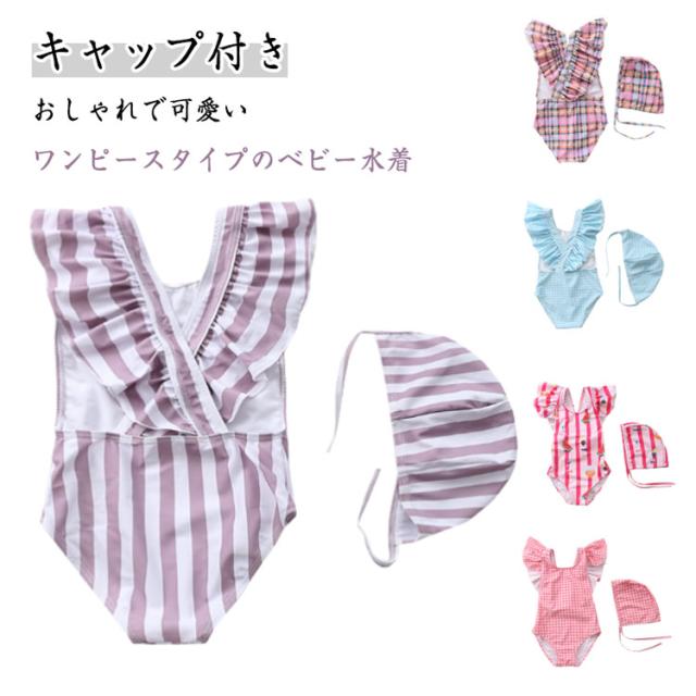 帽子つき ベビー フリル水着 オールインワン キャップ付き 女の子 みずぎ 子供用 2点セット キッズ水着 水着 ベビー水着 女の子 女児 子供水着 キュート かわいい キッズ水着 プール 幼稚園 スイムウェア ビーチ 海水浴