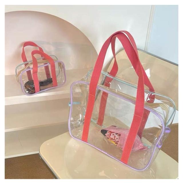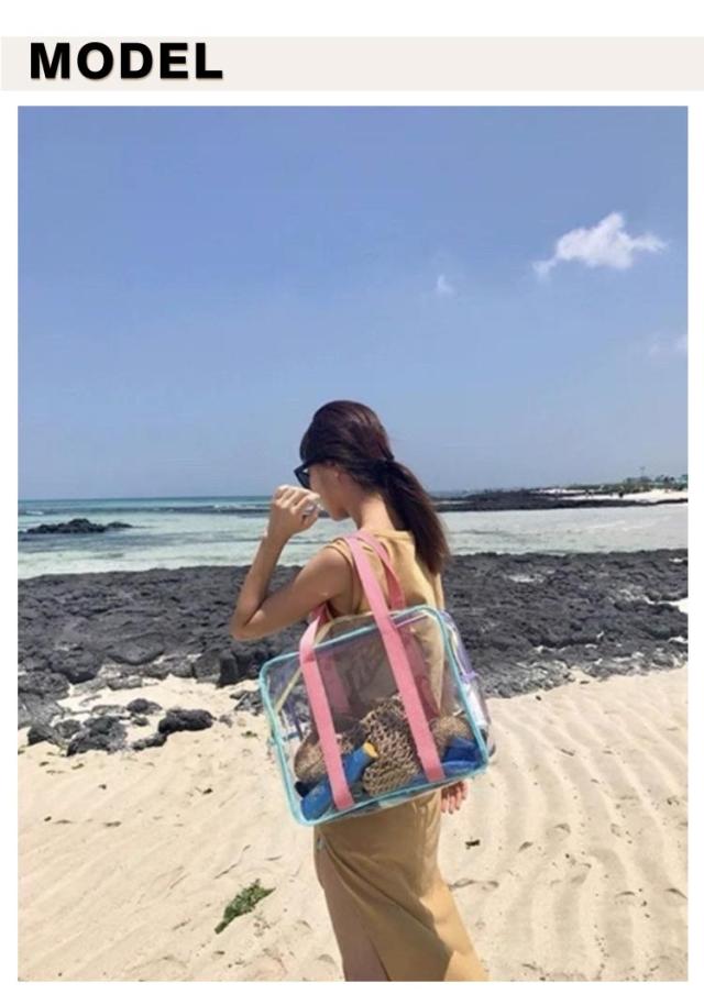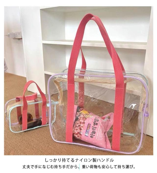 防水 【2点セット】プールバック PVC素材 女の子 大人 大容量 透明 クリアバッグ ビーチバッグ 【2点セット】プールバック 軽量 手提げ シンプル おしゃれ ファスナー 旅行バッグ ジムバッグ 水泳 スイミング