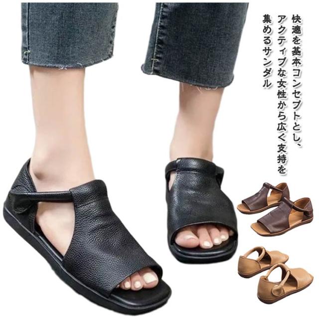 疲れない フラット レディース サンダル コンフォートサンダル コンフォートサンダル 春夏 通気 履きやすい レザーサンダル レザーシューズ 柔らかい カジュアル 履きやすい フラットサンダル 夏 滑り止め 軽量 痛くない靴 歩きやすい 大人 女性 通勤 ギフト プレゼント