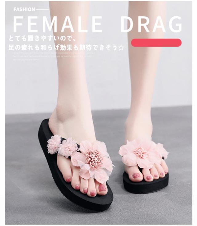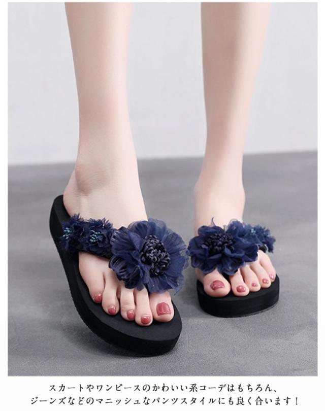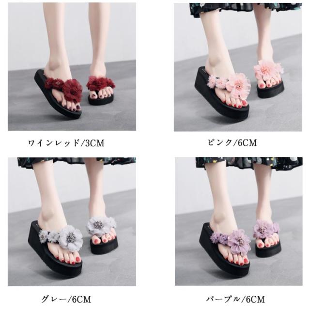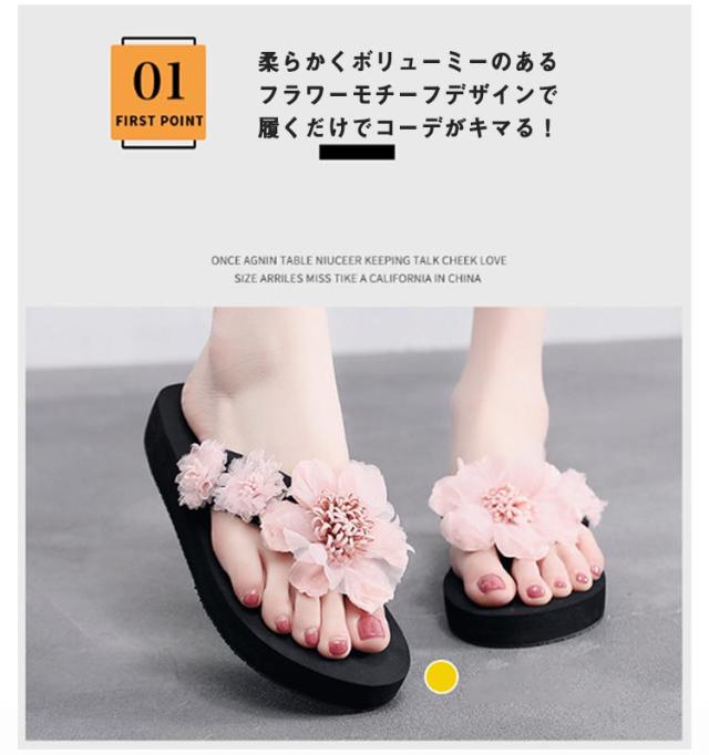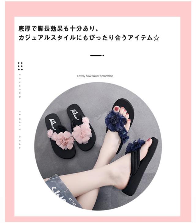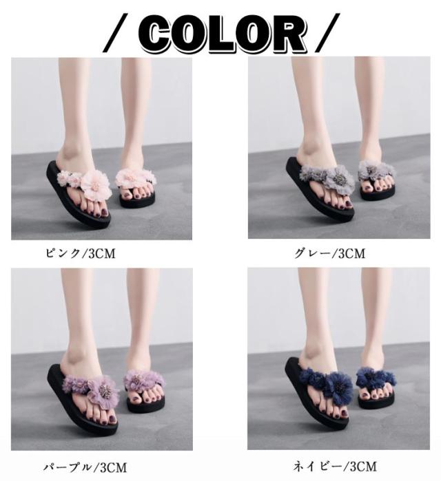美脚サンダル 3cm レディース 厚底サンダル トングサンダル 花 リゾート 履きやすい 滑り止め 靴 リゾート 6cm ビーチサンダル ミュールサンダル 軽い フラワーデザイン きれいめ かわいい コンフォート 軽量 ビーチサンダル 旅行 浴衣