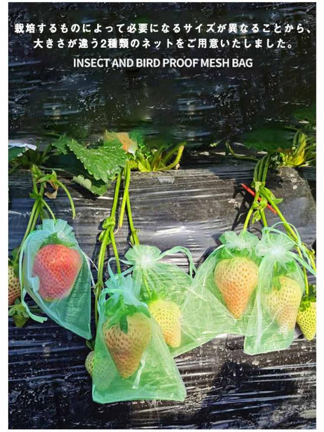| 虫や鳥から丹精込めて育てた果物を守る防虫、防鳥ネットです。栽培するものによって必要になるサイズが異なることから、大きさが違う2種類のネットをご用意いたしました。 内容枚数は100枚と大容量のため、枚数を必要とする農家さんにおすすめです。使い回しも効き、たくさんの果物をカバーできるので安心です。 巾着袋のように予め袋口に口を縛る紐が付いているため、袋にかぶせたいものを入れ、口を閉めるだけです。開閉にも非常に便利です。袋に入れたまま果実を保存できる。ブドウ、リンゴ、イチゴ、イチジク、植物、野菜、花を保護し、植物を健康に保ちます。 高品質ナイロンで、大切な果物や野菜をしっかりガードします。耐腐食性に優れ、無袋で栽培した果実よりも老化、日焼け防止に効果があることから痛みが少ない状態で収穫することができます。通気性は抜群なので果物を傷める心配もありません。 通気性が良いメッシュ素材を使用しているため、害虫、害鳥対策だけでなく、種びたし、催芽、花粉単離、種子保管、完熟栽培の促進など様々な用途でご使用いただけます。 害虫、害鳥対策だけでなく、種びたし、催芽、花粉単離、種子保管、完熟栽培の促進など様々な用途でご使用いただけます。 | |