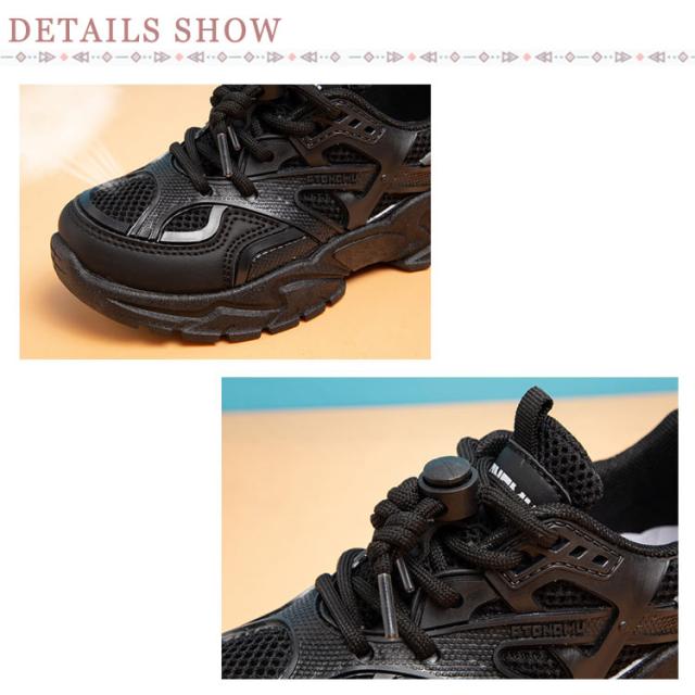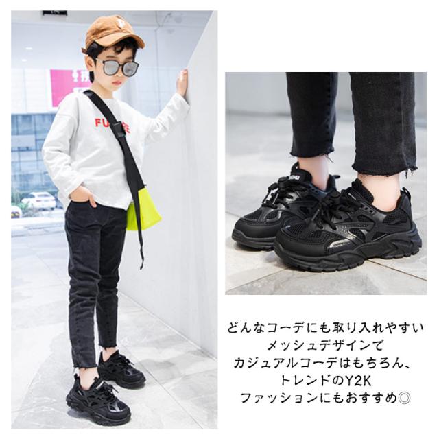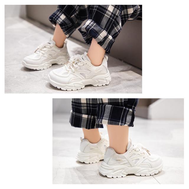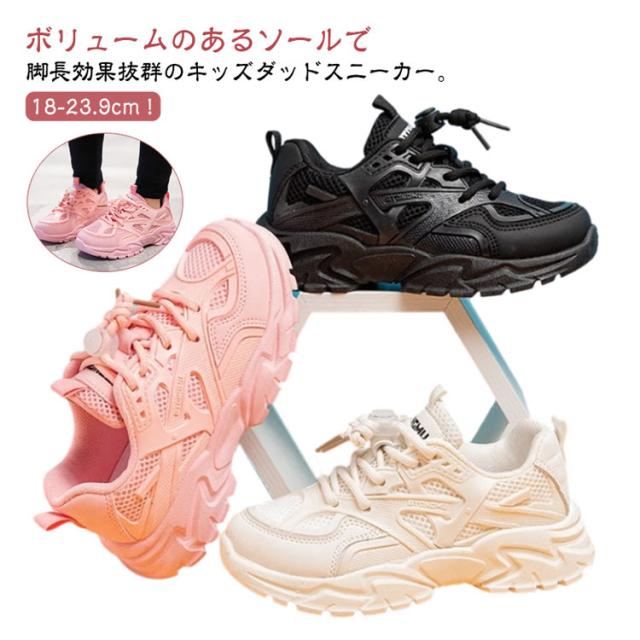 白 キッズ 運動靴 女の子 厚底スニーカー 男の子 小学生 黒 結ばない メッシュ ランニングシューズ スニーカー キッズ 厚底 ローカット 脚長 ダッドスニーカー ほどけない靴紐 ダンス靴 おしゃれ 通学 軽量 子供 ジュニア ホワイト ブラック