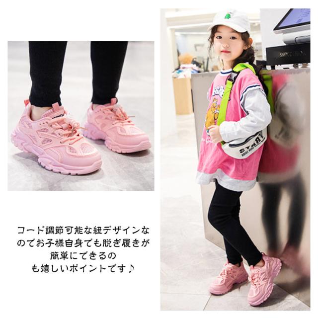| 18-23.9cm!ボリュームのあるソールで脚長効果抜群のキッズダッドスニーカー。 ソフトなメッシュで足あたりが柔らかく、履き心地も快適です。 どんなコーデにも取り入れやすいメッシュデザインでカジュアルコーデはもちろん、トレンドのY2Kファッションにもおすすめ◎ コード調節可能な紐デザインなのでお子様自身でも脱ぎ履きが簡単にできるのも嬉しいポイントです♪ | |