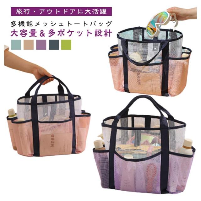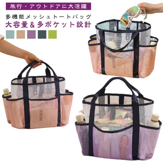 メッシュ トラベルバッグ 大容量 ビーチバッグ クリア 温泉 メッシュ 旅行 手提げバッグ トート 海水浴 ジム スイミング 水泳 お風呂バッグ ビーチ シンプル 大人 レディース メンズ