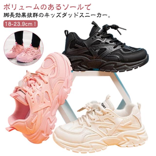 白 スニーカー キッズ ほどけない靴紐 女の子 厚底スニーカー 通学靴 黒 運動靴 ローカット 通学 メッシュ 小学生 厚底 ランニングシューズ ダッドスニーカー 結ばない 脚長 ダンス靴 おしゃれ キッズ 軽量 子供 ジュニア ホワイト ブラック