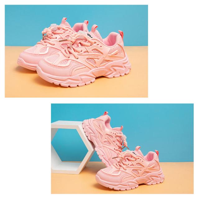| 18-23.9cm!ボリュームのあるソールで脚長効果抜群のキッズダッドスニーカー。 ソフトなメッシュで足あたりが柔らかく、履き心地も快適です。 どんなコーデにも取り入れやすいメッシュデザインでカジュアルコーデはもちろん、トレンドのY2Kファッションにもおすすめ◎ コード調節可能な紐デザインなのでお子様自身でも脱ぎ履きが簡単にできるのも嬉しいポイントです♪ | |