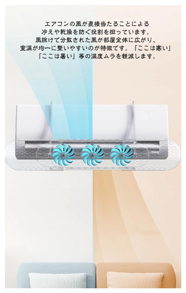 夏冬兼用 風除け 夏冬兼用 風よけ 吹き出し口 エアコンカバー エアコン 2個セット 長さ調整可 ファン付 対策 エアコンルーバー エアコン風向き調整 風向き 風の直撃防止 引っかけるだけ 換気 2個セット 冷房 暖房 節電 クーラー リビング 寝室