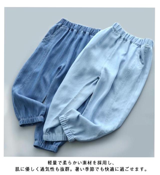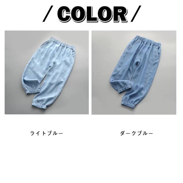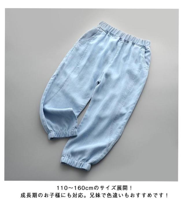 ウエストゴム デニムパンツ ロングパンツ 夏用 女の子 ウエストゴム キッズ 薄手 デニム風 おしゃれ カジュアル 子供用 ゆったり 蚊除け対策 キッズ ボトムス 男の子 パンツ ボトムス 大きいサイズ 冷房対策 部屋着 キッズ服 子供服