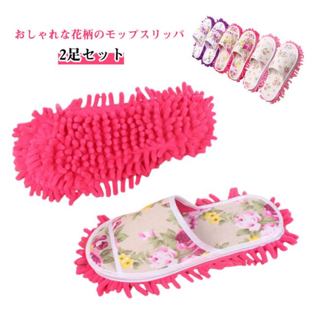 | おしゃれな花柄のモップスリッパ。【2足セット】 雑巾を水で浸してしぼったり、掃除機を運んできて準備したり…。そんな手間なく簡単にきれいにお掃除ができるので、忙しい現代人におすすめ。 いつものスリッパに着けるだけで、簡単にお掃除ができます。 底のモール生地がホコリや水を吸着、汚れたら洗濯機で洗えます。 マジックテープで取外し可能で汚れて洗いたくなったらすぐに洗えるので衛生的にも安心。 吸水性もいいので、床にこぼしたジュースやお茶もさっとひと吹き出来ちゃう万能アイテム。 小さなお子様や、ペットのいるご家庭に。雑菌や汚れから、デリケートなお肌を守るために。いつのまにか抜けてるペットの毛も、しっかりキャッチしてからめとります◎ | |