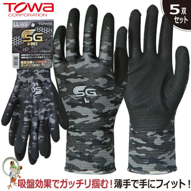 手袋 背抜き手袋 作業手袋 作業用手袋 SG-A007 ニトリル背抜き手袋 5双セット 業務用 グリップ力 耐油手袋 薄手 ゴム手袋