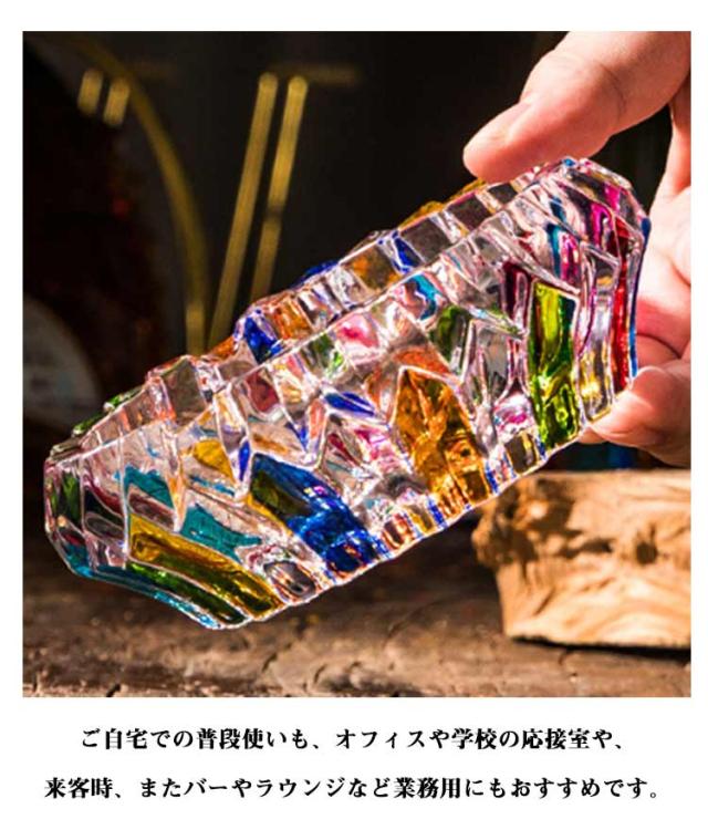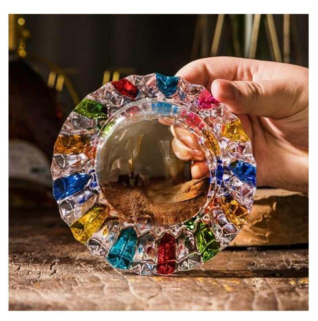 | 美しいカットが高級感を演出するガラス灰皿。【ステンドグラス調】 まるでステンドグラスの様にキレイで、思わず見いっちゃいます♪ 美しいカットが存在感をより一層高めます。 ご自宅での普段使いも、オフィスや学校の応接室や、来客時、またバーやラウンジなど業務用にもおすすめです。 | |