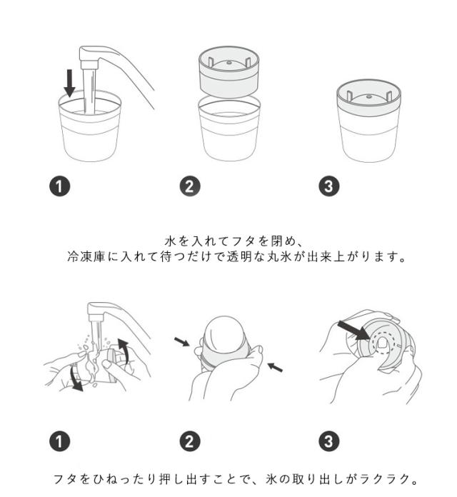 | 大きな丸い氷が作れる製氷皿。 水を入れてフタを閉め、冷凍庫に入れて待つだけで透明な丸氷が出来上がります。 フタをひねったり押し出すことで、氷の取り出しがラクラク。 丸氷はドリンクの風味を損なわず程よく冷やすのに最適なカタチ。大きいから溶けにくく長持ち。 誰でも手軽に、バースタイルのオンザロックが楽しめます。 家族で一緒に飲める5個セットです。積み重ねて置けるので省スペース。 | |