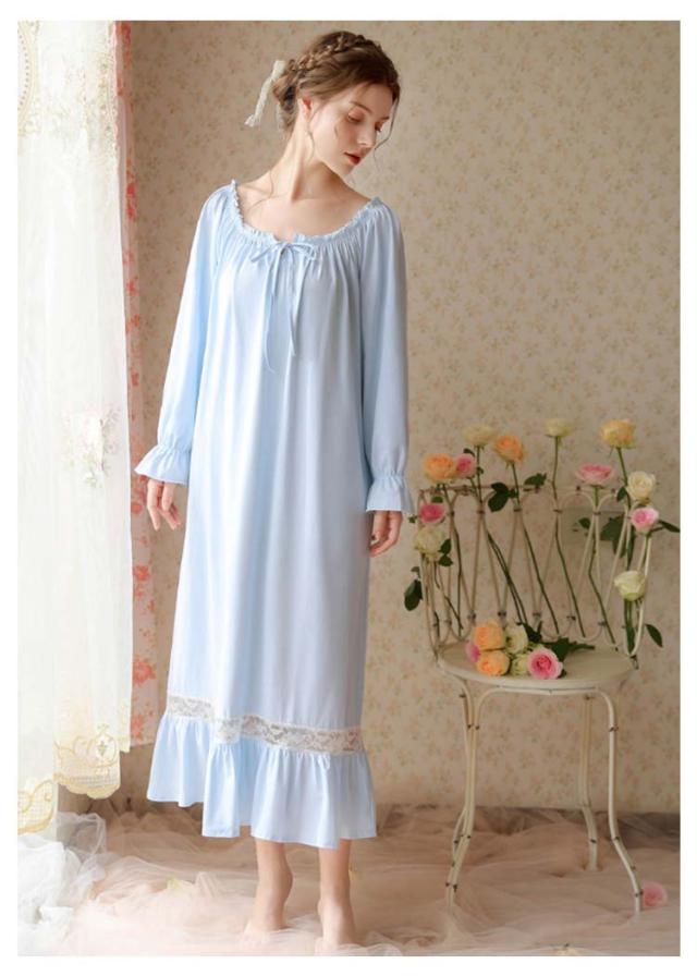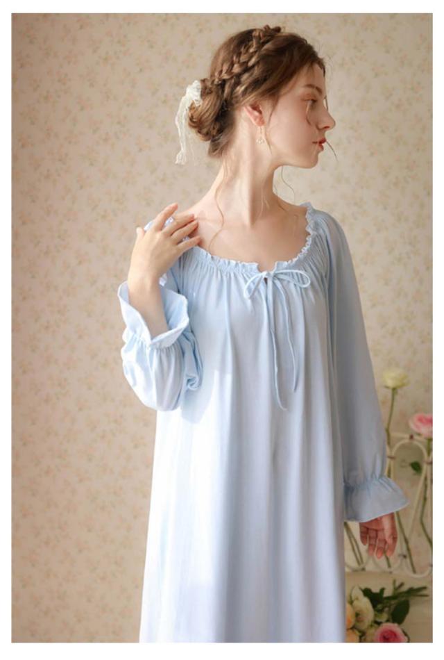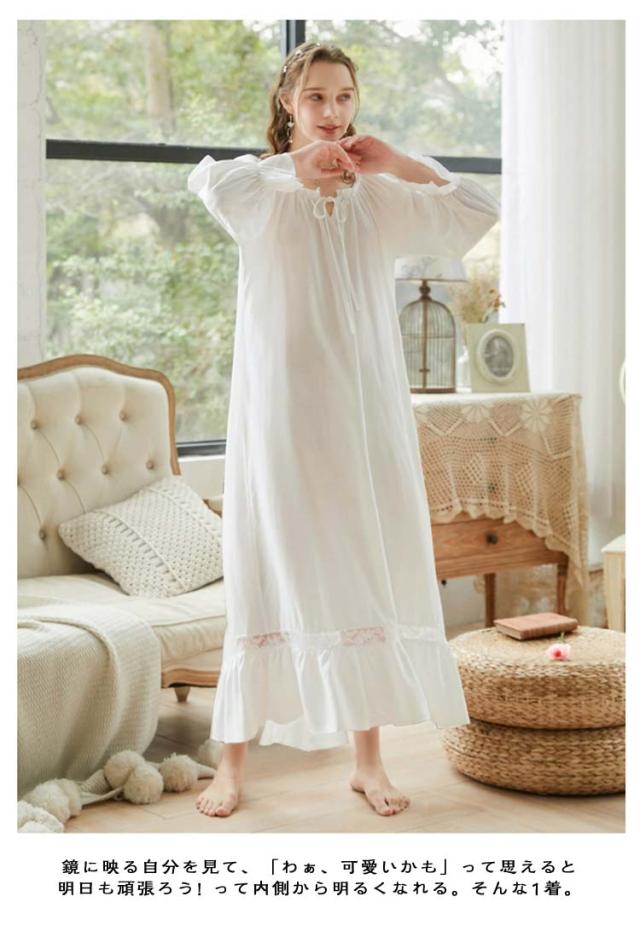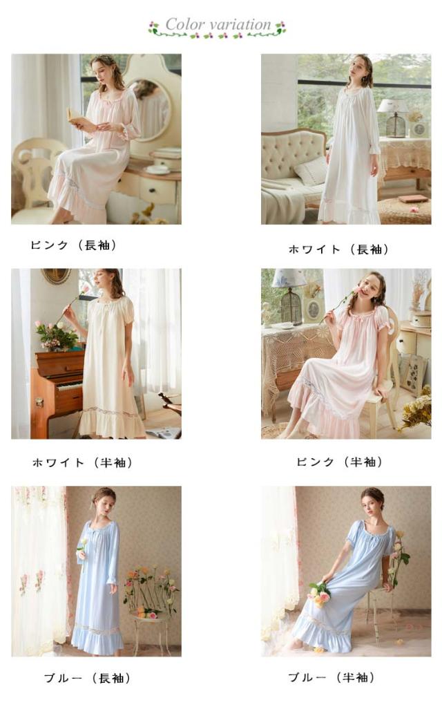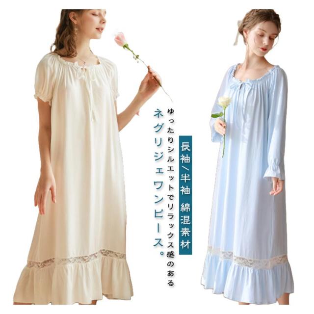 綿 レディース ワンピース 無地 秋 ロング 綿 夏 ルームウェア 姫 半袖 長袖 コットン 姫系 部屋着 ガウン ネグリジェワンピース ナイトウェア ロング丈 可愛い パジャマ ルームワンピース 寝巻き 女性 春 ブルー ホワイト ピンク