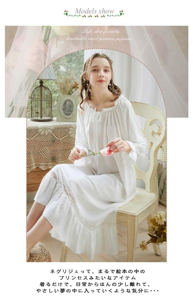 | 長袖/半袖 綿混素材 ゆったりシルエットでリラックス感のあるネグリジェワンピース。 ネグリジェって、まるで絵本の中のプリンセスみたいなアイテム 着るだけで、日常からほんの少し離れて、 やさしい夢の中に入っていくような気分に・・・。 鏡に映る自分を見て、「わぁ、可愛いかも?」って思えると 明日も頑張ろう! って内側から明るくなれる。そんな1着。 “さらり”と“ゆったり”心地いい着心地のまるで“シルク”のような高級感のある生地に 包まれて、快適な眠りを・・・。 <お勧めポイント> 柔らかな肌ざわりと女性らしいフリルデザインで、 部屋着としても寝巻きとしても最適です。 軽くて“さらさら”快適な着心地 肌にまとわりつかず、ふんわり軽やか。 お休みの時間を心地よく包んでくれます。 裾はマーメイドのようにゆったり たっぷりの生地に伸縮性があり、動きを邪魔しない。 リラックスできるよう、追及されたデザインに。 | |