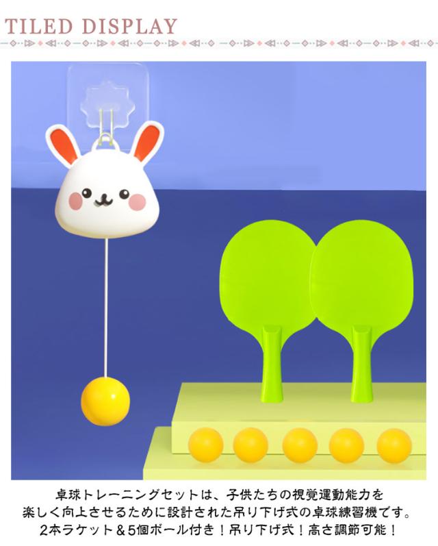 | 卓球トレーニング セット。卓球トレーニングセットは、子供たちの視覚運動能力を楽しく向上させるために設計された吊り下げ式の卓球練習機です。 2本ラケット&5個ボール付き!吊り下げ式!高さ調節可能! 【卓球トレーニングおもちゃ】親子で楽しく交流しながら一緒に練習できるのはもちろん、一人でも気軽にスイング練習が可能です。家庭でのトレーニングにぴったりのアイテムです! 【高さ調節可能】高さ調節が可能で、屋内外どちらでも使用できるため、初心者からでも気軽に卓球の練習が楽しめます。 【取り付け簡単】粘着性が高く、設置もラクラク。跡が残らないフック設計で、環境に優しい軽量ラケットもセットになっています。初心者でも手軽に始められます! 【ギフトにも最適】この卓球トレーニングおもちゃは、親子のコミュニケーションを促進し、目のリラックス、体力向上、反応力やコーディネーション力の強化など、子供の成長を応援する素晴らしいギフトです。 | |