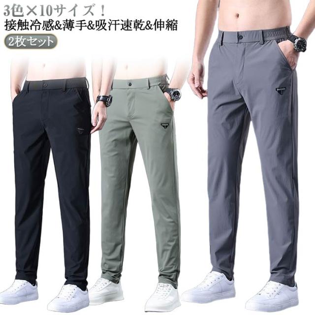 アイスシルク ストレッチパンツ 無地 速乾 軽い パンツ スポーツパンツ 2枚セット!冷感 吸汗速乾 冷感パンツ メンズ パンツ 軽量 接触冷感 uvカット 涼しい アイスシルク 春 秋 無地 ゆったり スポーツウェア パンツ 送料無料