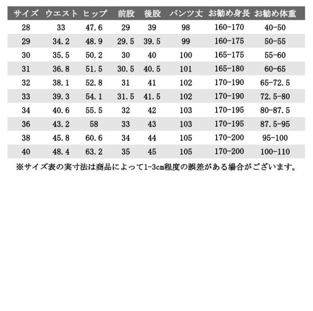 | サイズ | 28 29 30 31 32 33 34 36 38 40 |