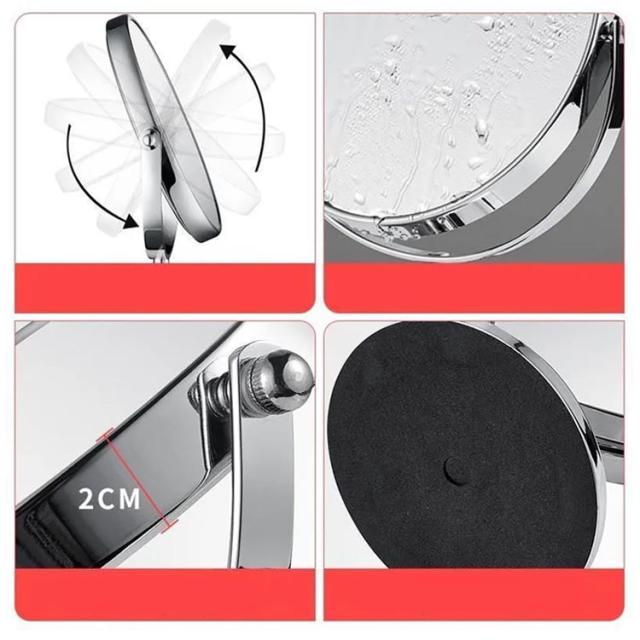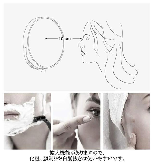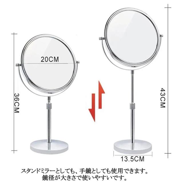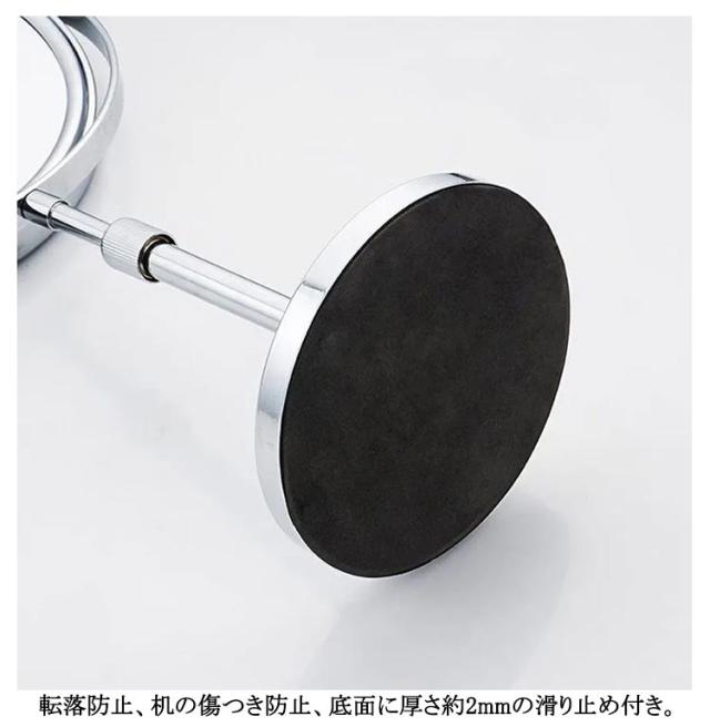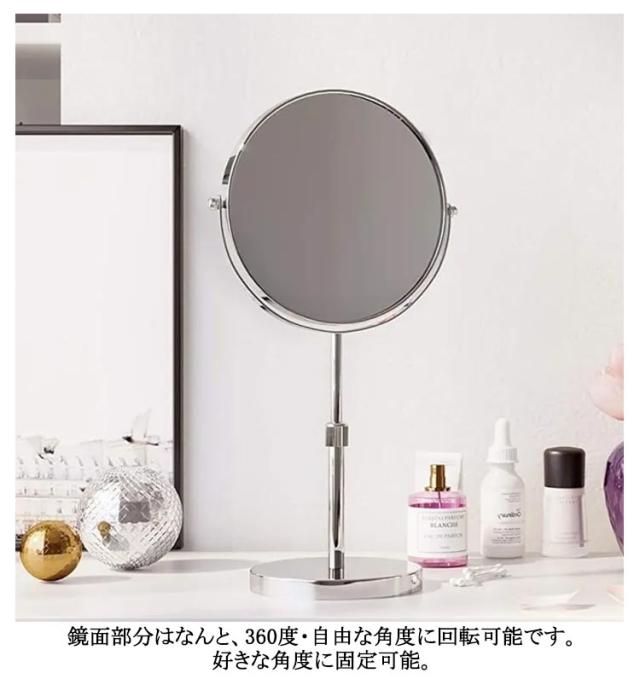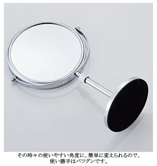 | 6インチ/7インチ/8インチ 両面使える拡大卓上鏡 シンプルなデザインの卓上鏡です。鏡は表裏にくるりとまわして両方使えます。 鏡面部分はなんと、360度・自由な角度に回転可能です。好きな角度に固定可能。 その時々の使いやすい角度に、簡単に変えられるので、使い勝手はバツグンです。 拡大機能がありますので、化粧、顔剃りや白髪抜きは使いやすいです。 転落防止、机の傷つき防止、底面に厚さ約2mmの滑り止め付き。 スタンドミラーとしても、手鏡としても使用できます。鏡径が大きさで使いやすいです。 | |