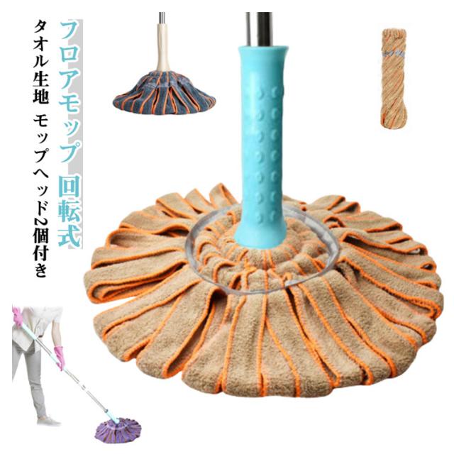 モップ 乾湿両用 フロアモップ 水拭き 水拭きモップ 綿 取替モップ1個付き フローリングモップ タオル生地 モップ絞り モップ 回転式 絞れる クリーナー 雑巾がけ 業務用 家庭用 掃除 床 クロス 拭き掃除 玄関 玄関掃除