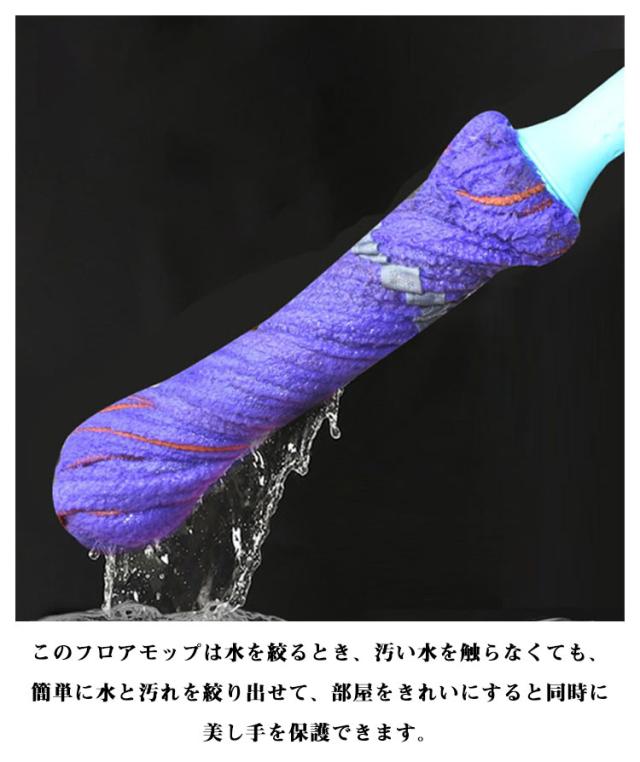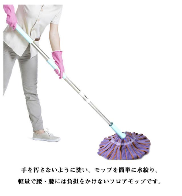 | 手を汚さないように洗い、モップを簡単に水絞り、軽量で腰・膝には負担をかけないフロアモップです。【タオル生地】【モップヘッド2個付き】 このフロアモップは水を絞るとき、汚い水を触らなくても、簡単に水と汚れを絞り出せて、部屋をきれいにすると同時に美し手を保護できます。 床に何の傷もつけませんモップの先にシリコンマットがあります。床の汚れを効果的に落とすことができます。 フロアモップを使わない時は、コーナーや家具の隙間などの場合に置いたり、フック付きで壁に掛かったりすることができ、お邪魔にならないです。 使用方法:ヘッドのハンドルを握って上に引っ張って回すだけ、水を絞ることが簡単にできます。 | |