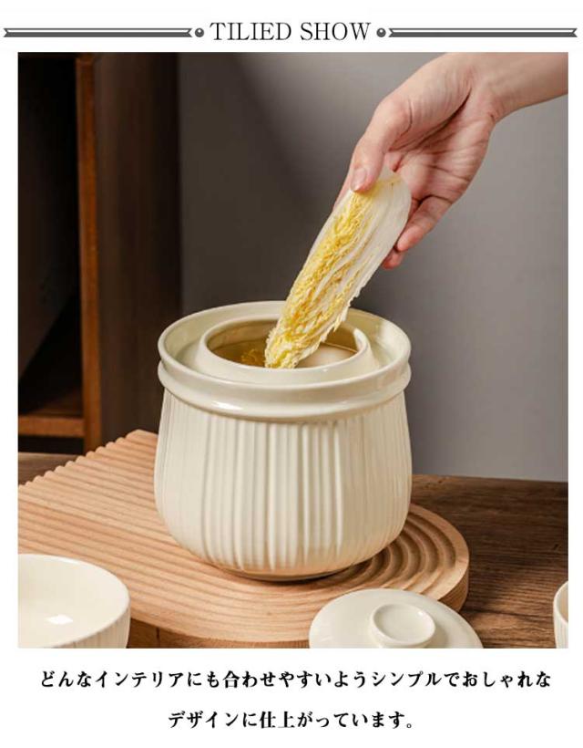 | ぬか漬けはもちろん梅干や味噌作りに最適な漬物容器!自家製漬物作りにピッタリ。 どんなインテリアにも合わせやすいようシンプルでおしゃれなデザインに仕上がっています。 シックな色合いは使う人を選ばず、現代のライフスタイルに合わせてお使いいただけるので、食卓やキッチンにも出しておけます。 | |