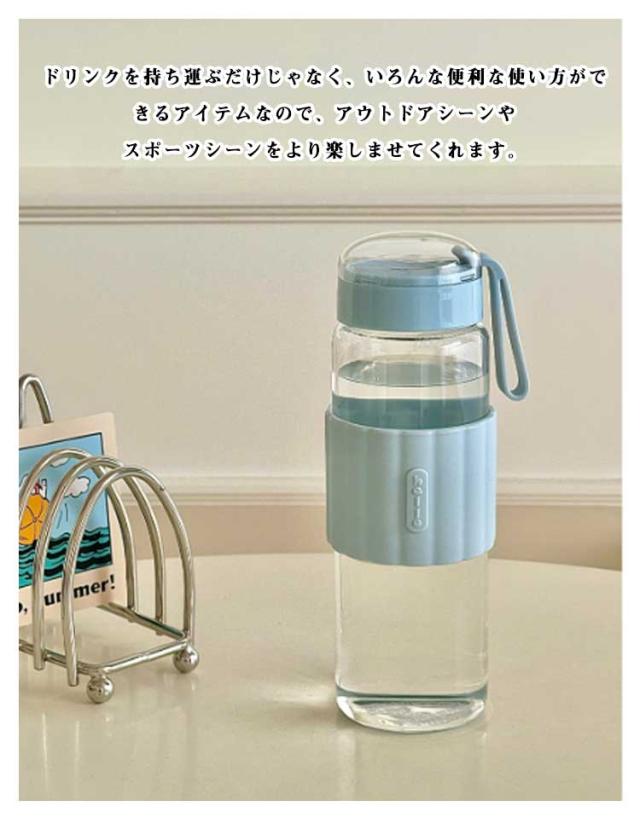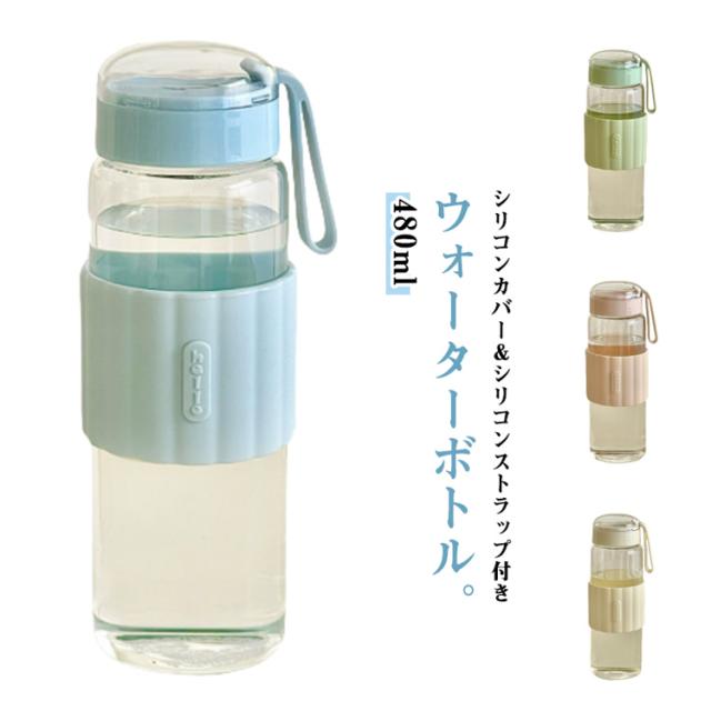 大容量 カバー付き ウォーターボトル 480ml 携帯便利 ガラスボトル ストラップ付き 大人 透明 ボトル ガラス 漏れ防止 直飲み 子供 キッズ マイボトル 通学 ドリンクメイト おしゃれ かわいい スポーツボトル ウォーターボトル 通勤