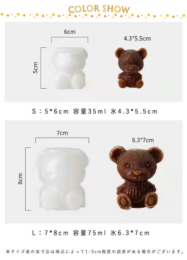 | くまの形の立体的な氷が作れる製氷器!大きな形なので氷が解けにくい。 シャーベットやゼリー作りの型にも使えてお子様にも喜んでもらえます。デコスイーツ作りにも! 溶けにくい大きな氷が作れるため、ウィスキーやハイボール用の氷を作るのにも重宝します。 様々な手作り装飾の需要を満たすことができて、夏の涼しげな暑さを解消する! 食品級シリコン素材で作られており、非毒性で洗いやすい。作りがしっかりしていて長くご利用いただけます。 | |