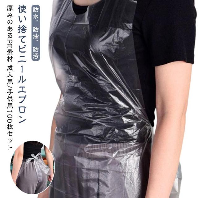 成人用 エプロン 首掛け 防汚 使い捨てエプロン 介護 ビニール ビニールエプロン 作業 厚め 撥水 防水 【100枚セット】 子供用 透明 クリア 男女兼用 袖無し 使い捨て ポリエチレン PE 結んでサイズ調整できる 入浴介助