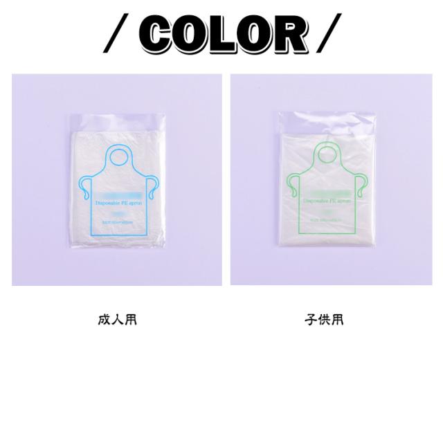 | 防水、防油、防汚 厚みのあるPE素材 使い捨てビニールエプロン 成人用/子供用100枚セット ○こんなところで大活躍↓ ・コーヒーショップ ・ネイルショップ ・レストラン ・高速道路サービスエリア ・フランチャイズレストラン ・デパート ・食料品コーナー ・学校給食 ・ホテルビュッフェ ・特別養護老人ホーム ○軽くて丈夫な使い捨てビニールエプロンです。 ○薄くて軽いフィルムのエプロンで、軽快で動きやすくサラリとした着用感です。後ろを紐で結んで着脱する、男女兼用のフリーサイズです。 ○PE素材なので、ご家族やペットの食事介助・介護だけでなく習い事の教室や軽作業時の思わぬ汚れに対して安心です。 ○片付けは簡単。使い捨てタイプのため、使用後そのまま廃棄でき洗濯等の手間がなく、衛生的です。 ○透明のビニールエプロンで可愛い洋服の上からでも違和感なくお使いいただけます。 | |