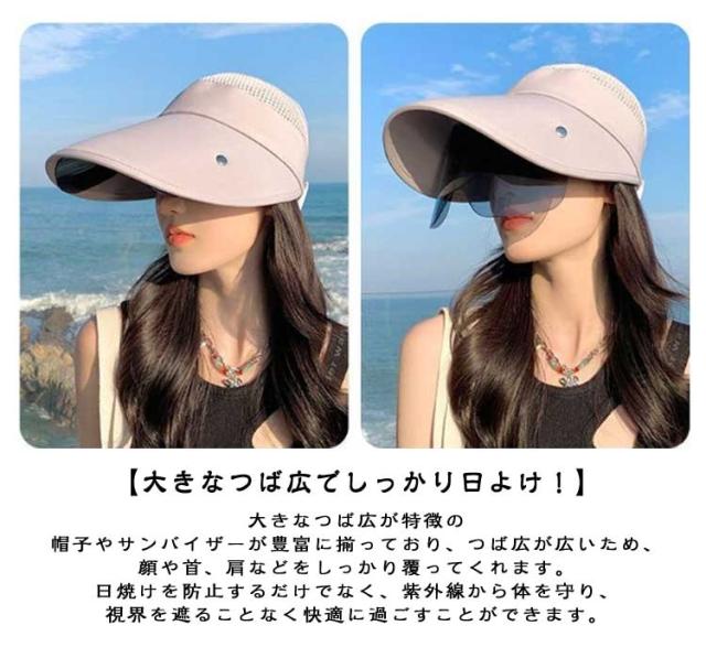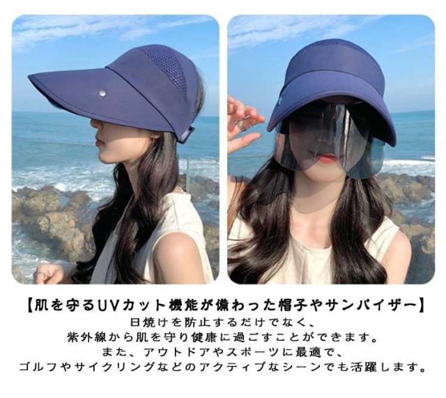サンバイザー 帽子 サンバイザー メンズ ワイドバイザー 車 サンバイザー帽子 レディース UVカット 自転車 折り畳み レディース 日よけ帽子 UPF50+ ゴルフ 顔 日よけ 付き フェイスカバー ひんやり 日焼け 紫外線対策 UVケア キャップ つば広 アウトドア スポーツ