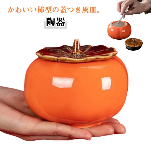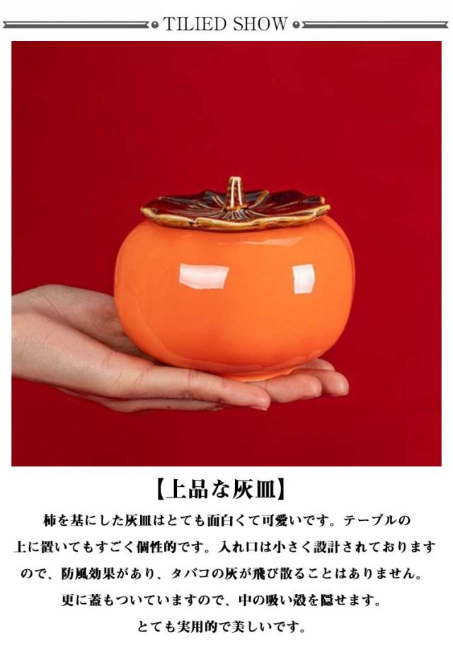 かわいい 臭い防止 灰皿 柿型 陶器 卓上灰皿 高級感 灰皿 丸 はいざら 丸型 おしゃれ アイコス ホテル 北欧 洗える 大容量 卓上 オフィス 喫煙室 フタ付 テーブル 灰皿 小物入れ 置物 インテリア 雑貨 敬老の日 誕生日 ギフト プレゼント オレンジ 柿型灰皿