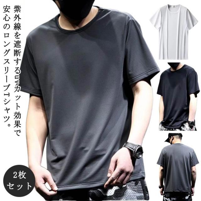 2枚セット tシャツ 冷感インナー メンズ 半袖 トップス tシャツ 夏 2枚セット 半袖tシャツ 吸汗速乾 接触冷感 半袖 アイスシルク 涼しい ドライ 薄手 通気性 ストレッチ 丸首 紫外線対策 Tシャツ 作業着 トレーニングウェア