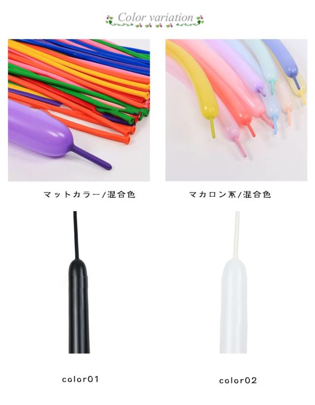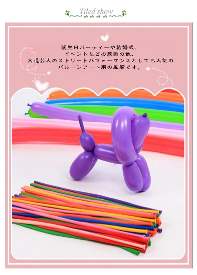 | 混合色/同色【400本セット】 誕生日パーティーや結婚式、イベントなどの装飾の他、大道芸人のストリートパフォーマンスとしても人気のバルーンアート用の風船です。 空気を入れて、捻ったり曲げたりして動物を作るバルーンアートに適した割れにくい風船です。色も赤、青、黄色、ピンク、水色など様々なカラーが入った100本セットなので、様々なアートやリクエストに対応できます。 イベントの出展ブースの配布サービスや販売店の来店者サービスなどでの配布に如何でしょうか。 | |