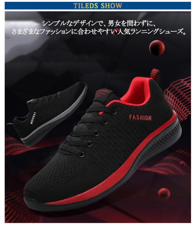 | 22.5cm〜30.0cm 軽く、心地よいクッション性と抜群通気性 シンプルなデザインで、男女を問わずに、さまざまなファッションに合わせやすい人気ランニングシューズ。 スポーツシーンだけでなく、通勤や通学、普段履きとしてもカジュアルなコーディネートをお楽しみい ただけます。 通気性も良く、蒸れにくい、着用時の季節を選びません! 見た目のおしゃれさだけではなく、柔らかクッションで、足首にかかる負担をけいげん! ソールがデコボコだから、滑るのを防いでくれます、日常使いや雨の日でもあんしん! 足添いの良いシームレスなメッシュアッパー 軽量でありながら優れたクッション性を発揮する。 | |