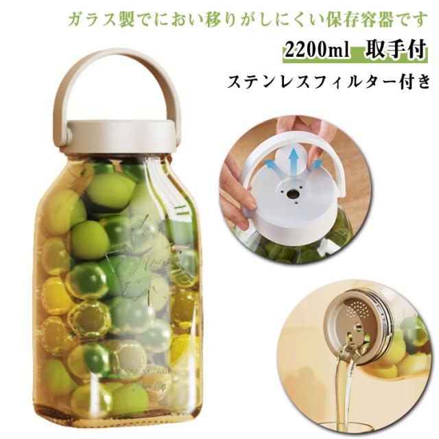 果実酒びん ガラス 2200ml 梅シロップ瓶 密閉 果実酒 瓶 梅酒 保存容器 取手付 密封びん ビン フィルター内蔵 ビンシロップ 瓶 ガラス 容器 梅酒瓶 冷蔵庫 果実酒ビン 漬け物 果実酒 保存びん 保存瓶 保存ビン フルーツシロップ ガラス容器 漬物容器 2.2リットル