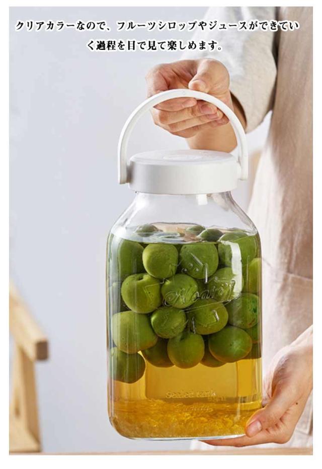 | ガラス製でにおい移りがしにくい保存容器です。【2200ml】【取手付】【ステンレスフィルター付き】 フルーツシロップはもちろん、梅シロップや赤じそジュース、ピクルスなどにも最適です。 クリアカラーなので、フルーツシロップやジュースができていく過程を目で見て楽しめます。 液だれしにくいので、他の容器に注ぐときにも安心です。 注ぎ口が広めなので、注ぐときはもちろんお手入れ時にも洗いやすいのがうれしいです。 | |