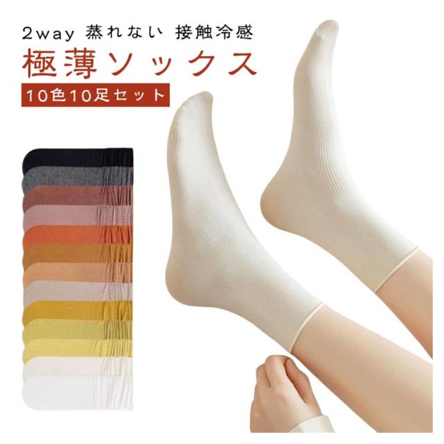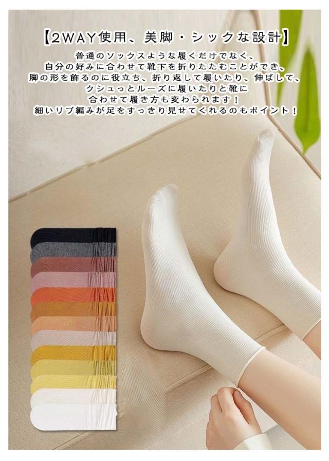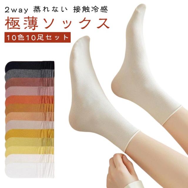 | 2way 蒸れない 接触冷感 極薄ソックス 【10色10足セット】 【通気性が抜群・接触冷感】通気性が高く履き心地のビロード素材を採用して、柔らかくて肌触りが良いだけでなく、肌に接触して冷たい感じがあり、薄くて通気性も良くし、夏用着用しても蒸れを防いで素足をやさしく包み込みます。 【2WAY使用、美脚・シックな設計】普通のソックスような履くだけでなく、自分の好みに合わせて靴下を折りたたむことができ、脚の形を飾るのに役立ち、折り返して履いたり、伸ばして、クシュっとルーズに履いたりと靴に合わせて履き方も変わられます! 細いリブ編みが足をすっきり見せてくれるのもポイント! 【優れた伸縮性、良い履き心地】伸縮性はとても良く、足に拘束感はありません。せい何回履いてみたら、だんだん足にフィットします。足の形状に合わせて確り縫製され、足首や踵など摩擦が激しいところでも破れることはなく、長い間のご愛用頂けます。 【無地・カラフル】さまざまな色があり、多くの女性に適しています。ピュアカラーのデザインはすべてのコーディネートに適しています。ジーンズもスカートもJKもカジュアルパンツも大丈夫,子供も大人も大好きです。毎日の靴や衣装によってソックスのカラーを自由に選び、毎日着る色によって気分が変わります。 | |