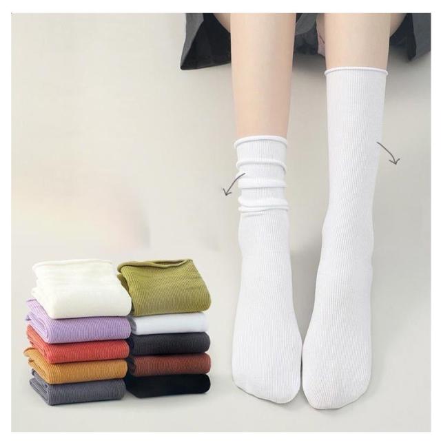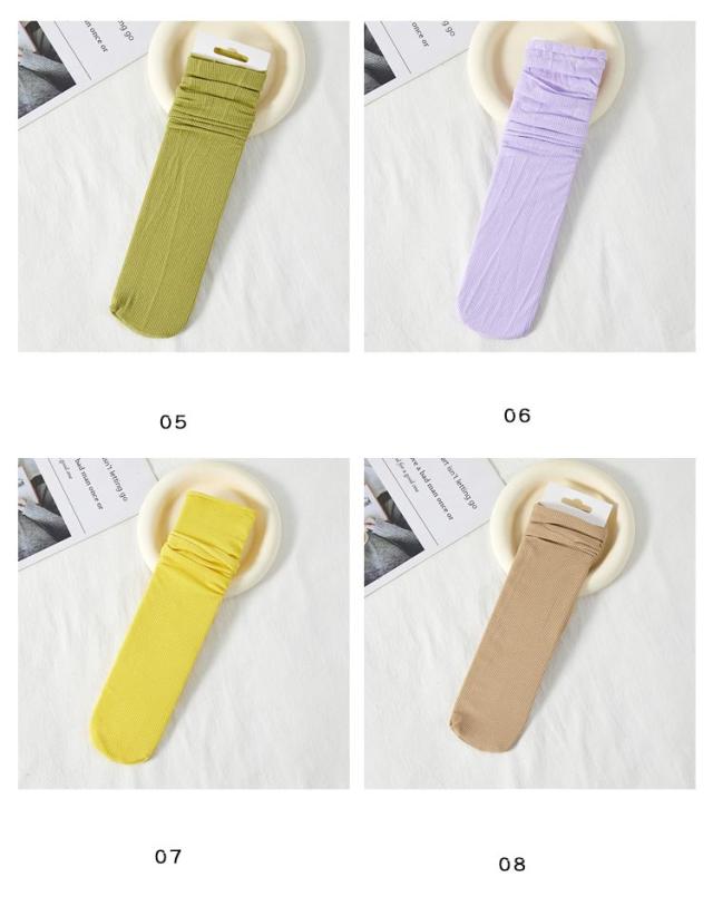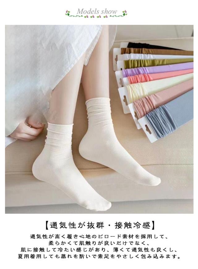 靴下 スリークォーター 夏 ソックス 冷感 【10色10足セット】 レディース ひんやり 脱げない 蒸れない 薄手 接触冷感 ハイソックス ルーズソックス クール カラーソックス 夏用 ロング丈 涼しい 薄い リブ 通気性 絹靴下