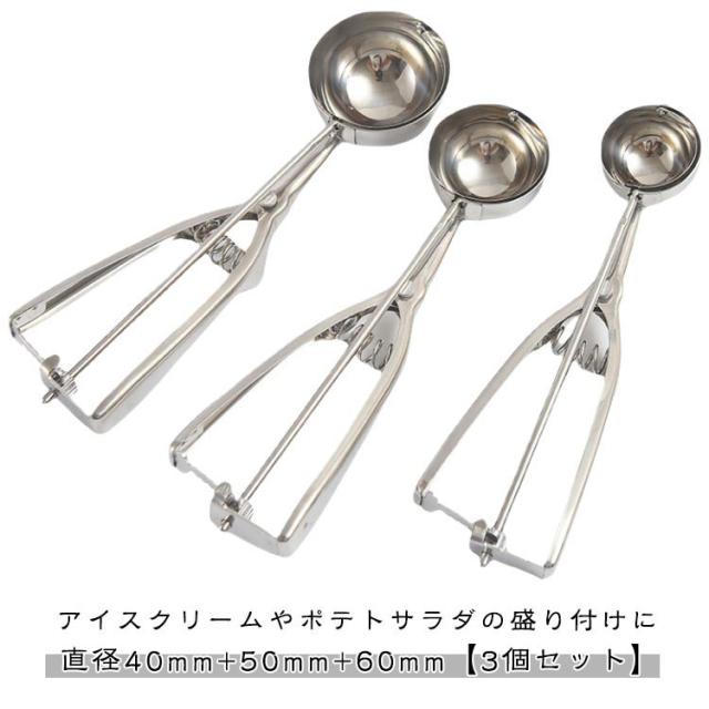 飲食店 小さい 【3個セット】 アイススクープ アイスクリームスプーン スプーン アイスクリーム 業務用 料理用 キッチン用品 【3個セット】 直径50mm 直径60mm 直径40mm ポテトサラダ 肉団子 ステンレス素材