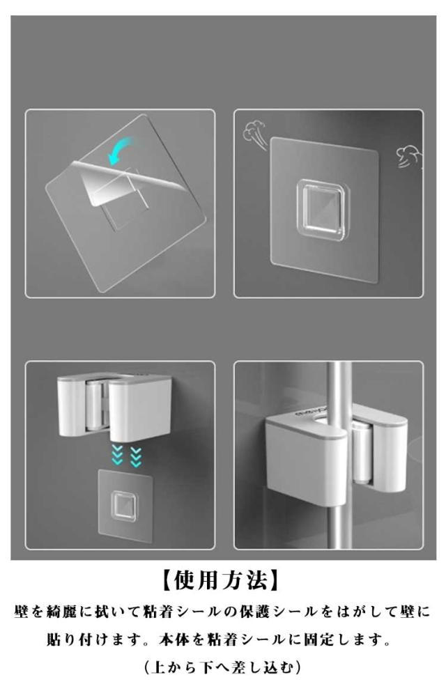 モップ 3個セット モップ収納 穴あけ不要 壁掛け モップホルダー 掛け 粘着タイプ ほうきフック モップハンガー モップホルダ ほうきホルダー 3個セット モップクリップ モップキャッチ ほうき モップ 収納 整理整頓
