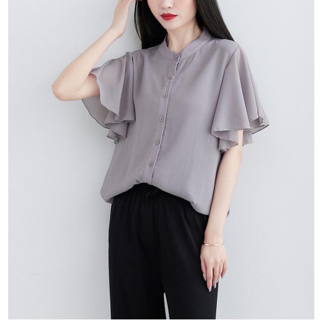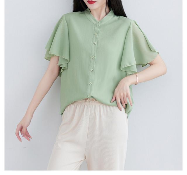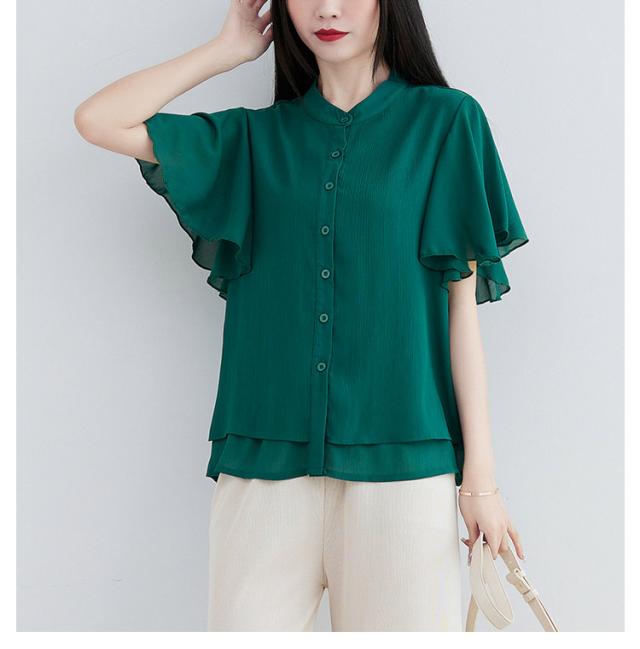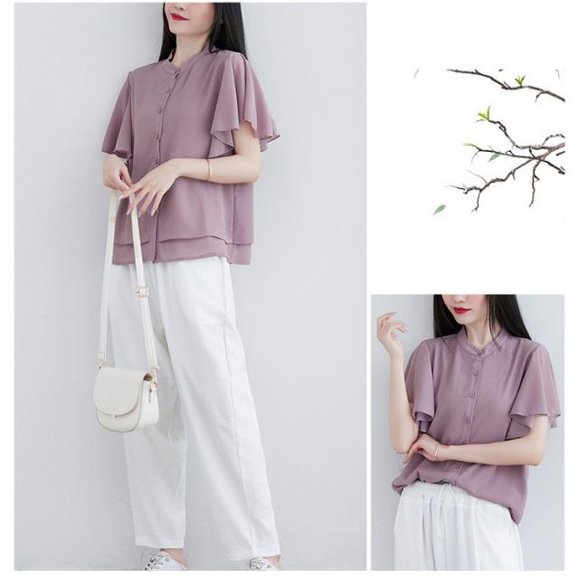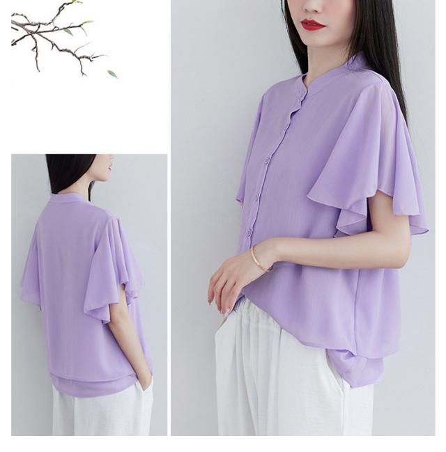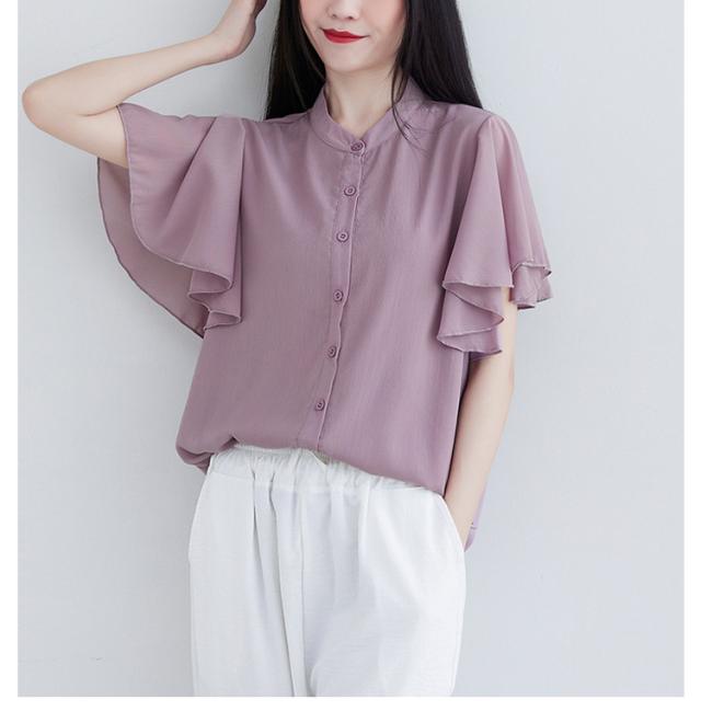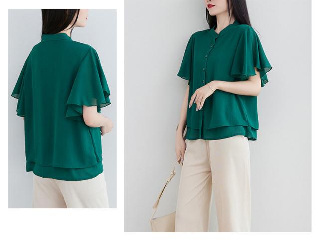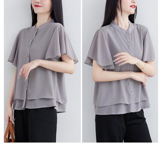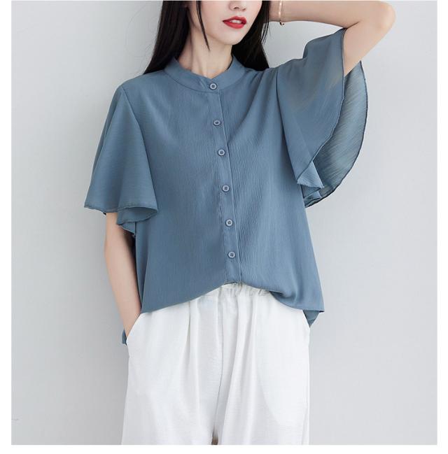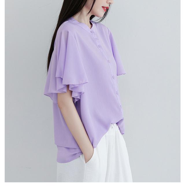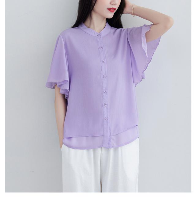ブラウス 二の腕カバー フレンチスリーブブラウス レディース 体型カバー 夏 半袖 ラッフルスリーブ リラックス フレンチスリーブ Aライン 春 ビッグシャツ シンプル オケージョン フレンチスリーブブラウス 羽織り 大きいサイズ 春